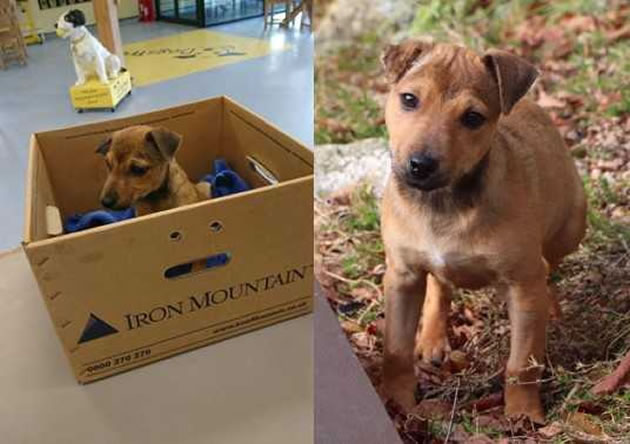 A 12-week-old puppy named Harrison, who was found dumped at the side of a road is heading off to a new home in Acton after being found dumped in a cardboard box.