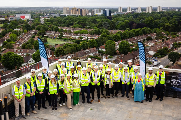 Members of the construction team and councillors at the topping out of Brooke House. Picture: L&Q