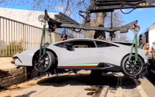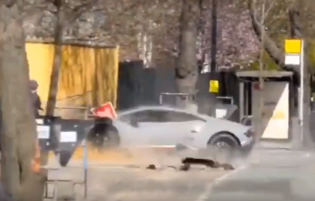 A Lamborghini Huracan Performante was written off after it was driven into a tree then a wall in North Acton this Sunday (24 March).