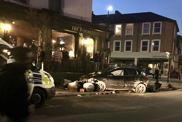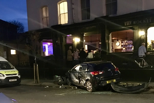 Three vehicles were involved in the crash including one which mounted the pavement outside the Rocket public house.