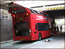 A bus has had its top deck nearly sheared off after an attempt was made to drive it under the bridge in Old Oak Common Lane on Sunday afternoon.