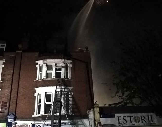 Three women, two men and two children were lifted from a second floor of the property above Atlas Estate Agents and adjacent to the Estoril restaurant. Firefighters used a nearby buildings ladder to rescue a further two men who were on a flat roof at the rear of the block. Two men were taken to hospital suffering from the effects of smoke inhalation with a number of others treated at the scene.