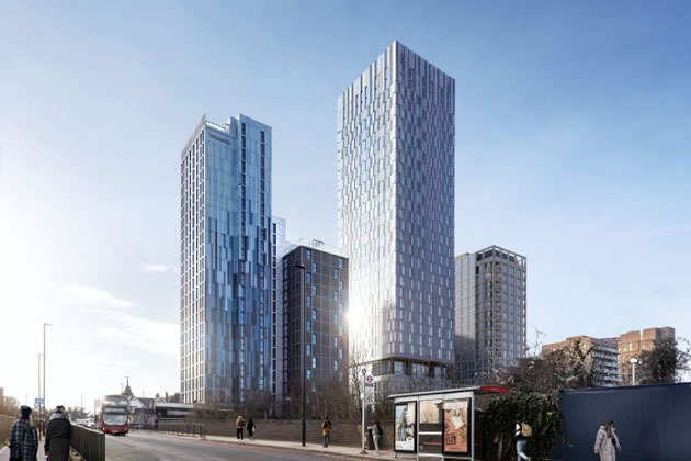 The final scheme by Downing has seen a reduction from the original proposal of 35 storeys to 31 and will see two towers containing 609 student flats and 69 Build to Rent units. The second tower is 17 storeys high and will contain the residential portion of which 35% will be affordable. Commercial space designed for shops will be at the ground floor level. The two buildings would be linked by a four-storey podium.