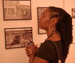 Alongside these aforementioned artists are Gilulia Baldorilli’s thoughtful photographs of Brick Lane, Konstantinos Vasileiou’s series of disquieting mixed media portraits, cheeky and amusing paintings from the “Rear End Collection” by Elise Colley, and the work of many of other volunteers that deserves to be seen.