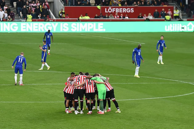 Brentford players in huddle before Chelsea game earlier this season. Picture: Brentford FC