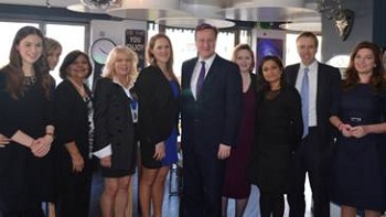 The Prime Minister with Brentford Female Entrepreneurs Left to right: Martha Keith, Maggie Bolger, Anila Vaghela, Suzie Betlem (Brentford Chamber of Commerce), Sarah Campus, The Prime Minister, Mary Macleod MP, Shavata Singh, Matt Hancock MP (Minister for Business and Skills), Karren Brady CBE.