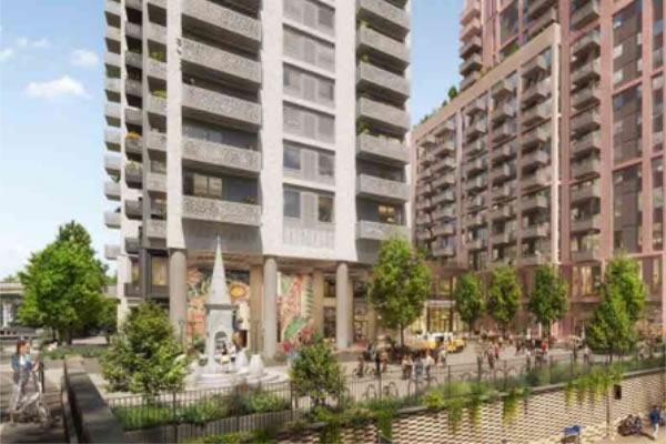 The proposals include a large public square which will host the Fountain, complete with running water and lighting. This location is about 300 metres from the Fountain's birthplace. The planning application will also include 916 homes (35% affordable) accommodated in four tall buildings of 15 -19 storeys. There would be commercial space, including shops and workspaces for "locally made, artisan and craft products". There are also plans to improve pedestrian and cycle access across the A4 to Gunnersbury Park.