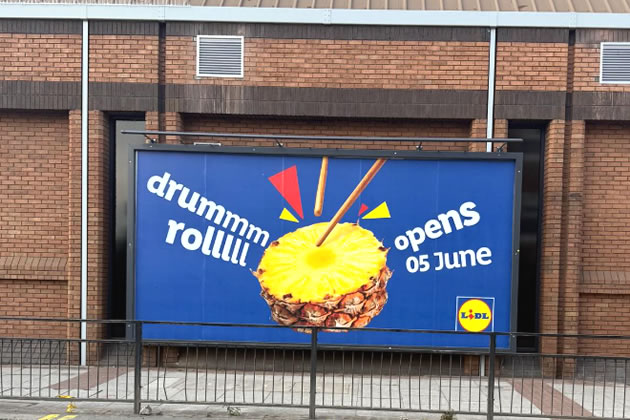 The poster announcing the opening date for Brentford's Lidl