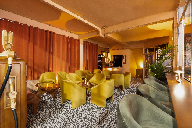 It is a seventies style lounge bar complete with leopard print carpet aiming for a super-chic vibe within the classic and supercar hub.