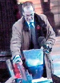 The day before a man of a very similar discription had been caught on camera (see picture right) stealing the collection money from the Royal Hospital ex-Serviceman’s home in Chelsea.