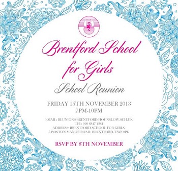 Please RSVP by email (by 8th November) to reunion@brentford.houslow.sch.uk or by telephoning the school on 020 8847 4281 or by post, Brentford School for Girls, 5 Boston Manor Road, Brentford, Middlesex TW8 0PG.