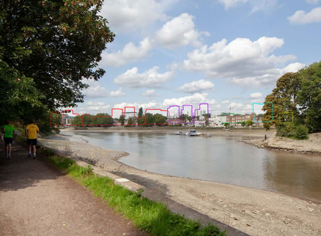 Views of new development (purple) from Surrey bank of the Thames