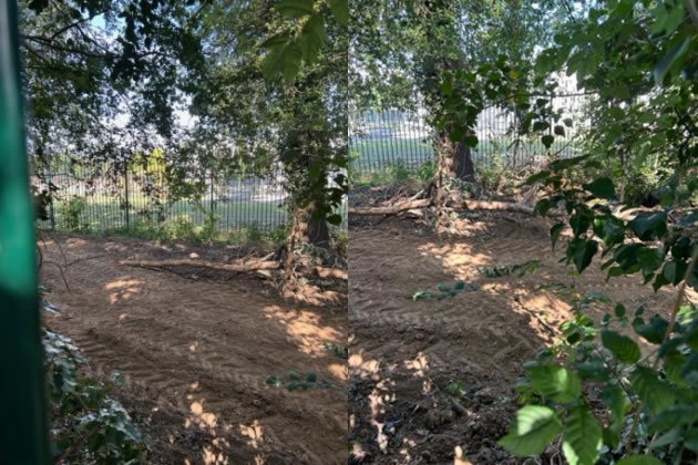 However, on Saturday 22 July workmen appeared at the site and removed a substantial amount of the vegetation and the ha-ha was filled in with sand. Residents querying the ongoing work were told that the school had ‘bought the land’ and had permission to do the work. Councillor Aftab Siddiqui attended the site and work was brought to a halt at 3.40pm as legally it should not have been taking place after 1pm on a Saturday.