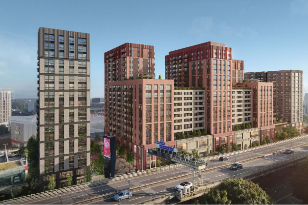 The long heralded proposals are for 5 tower blocks ranging from 15 to 19 storeys set on a podium and next to the motorway. Earlier versions of the plan had envisaged over 1,000 flats in six blocks up to 23 storeys high.