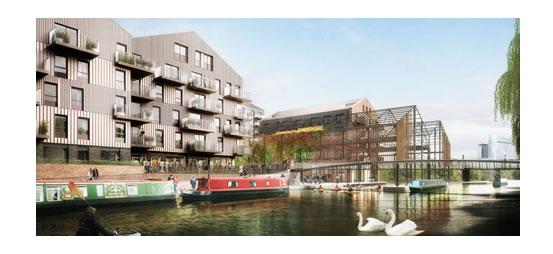 This stretch of the Grand Union Canal will also see towpath improvements, new mooring facilities and the renovation of the existing dock. The existing overhanging warehouse building will be retained following partial reconstruction.