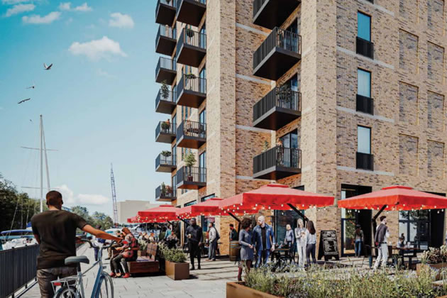 In April 2022, Fairview New Homes Ltd. submitted a planning application (P/2022/1142) for the redevelopment of this site (also known as Montgomery’s Wharf). The proposal includes 333 homes (328 flats and 5 maisonettes), of which 97 are classed as affordable (29% of homes, 35% of habitable rooms).