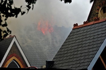 Early photos showing flames and the children evacuated are courtesy of Mark Kehoe and Alliance Dance Unit. Later ones are from Kath Richardson.August 15, 2013