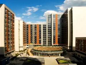 The Paragon complex has single study rooms for 893 units as well as 221 self-contained one and two-bedroom flats, some of which are social housing. The towers are as high as seventeen storeys and, at the time of construction, this was the tallest modular tower in the world with the units constructed in a factory in Newark before being assembled onsite.