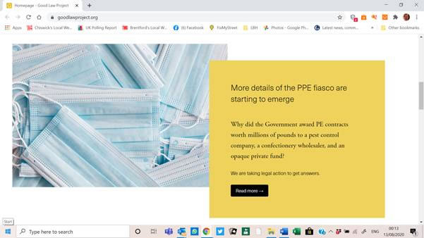 On Monday I had booked to attend an event with the Good Law Project. They are working to challenge in the courts some contracts which appear to be astonishingly inept even if they are not corrupt. The one I’ve been following most closely is a pest control company who have 16 employees and file micro-company accounts which suggest they are technically insolvent. They copped a contract worth £108M despite being a micro company in a different business. A Conservative MP on the radio justified this on the basis that rat catchers use PPE. My friend Eddie is a plasterer and also uses PPE, so can he have £108M too?
