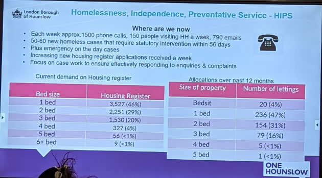 In the evening we had a seminar on council housing, starting with this worrying slide. The worrying bit is not the sea monster that seems to be entering the picture – that’s just the top of someone’s hairstyle, but the numbers on the left (when compared to those on the right, in particular). If my memory is right there were 3500 families on the list a couple of years ago. Last year there was 5500 and this year (do the adding exercise) it’s more like 7500. We actually housed less than 600 of them. It’s not quite that bad because we find them private accommodation in many cases but they usually are very expensive and/or not very good. We work like crazy to build or buy new homes but we struggle even to tread water. If anyone mentions this, think of this slide.