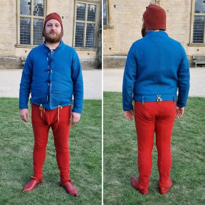 This seems to be a rather down-home version of Doublet and Hose and I doubt whether it would pass muster in the Guild Hall though the cod piece looks perky enough. He told me he had to do his interview in such an outfit and was asked to explain to the collected provosts about what was his management style. He found this a touch disconcerting but he got the job anyway.