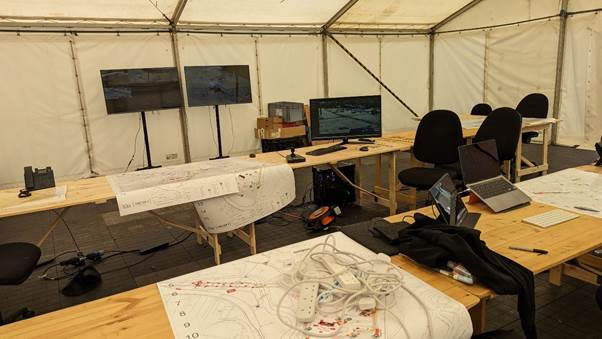 Here is the happy team from junction 2 and their centre of operations