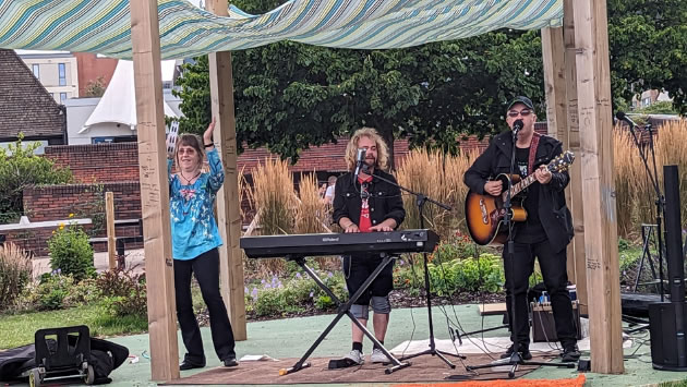 On Saturday afternoon, sadly for the last time in a while, there's a concert in Watermans park but I missed a lot of it, including a talented folk singer who sounded great. I did get Marky Dawson, someone I have heard celebrated many times over the years but whom I'd never heard myself. Well I did on Saturday and it was great. If I could generate the same power per kilogramme as Marky does we could forget about any energy crisis.