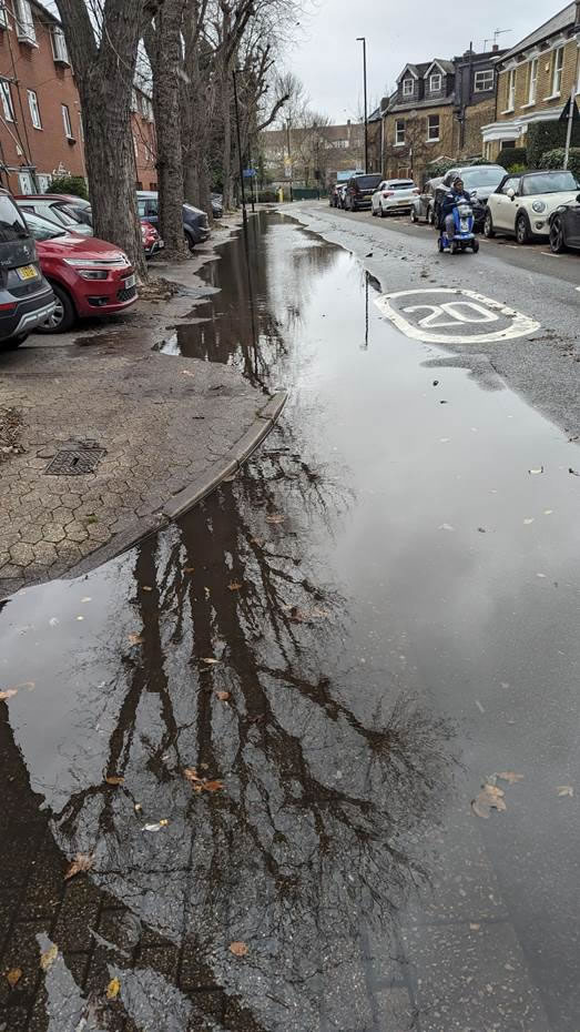 I headed out to Chiswick to look (amongst other things) at Fishers Lane where there is a persistent flood which neither Hounslow Highways (despite they try) and Thames Water (no comment) are unable to fix. People cannot get to their homes without wellies and that is really not acceptable, especially as (you’ve guessed it) later this week it froze and I understand a young lad fell over on it.