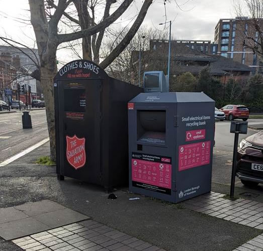 I spotted these two recycling boxes in the car park, which I wasn’t previously aware of. Handy to get rid of your old clothes and radios etc. Leaving an old TV on the top is technically flytipping but I forgive this one.