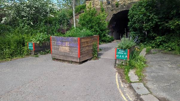 You don’t have to be a genius to work out why these are here, but I’m equally irritated that the people I was told had been contracted to plant and maintain don’t seem to have done it. Of course, the first plants put there, like the ones in Whitestile Road, went the way of the saddle that used to live on my bike. Great that we have such community feeling.