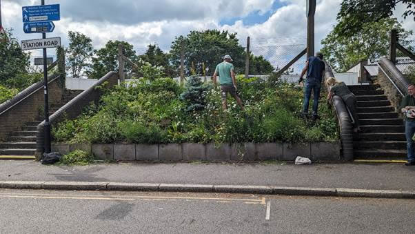 As usual I firkle around the ward too, and then Saturday dawns and I go to Station Road to chat to the Air Quality Brentford (AQB) crew and give them a bit of a hand and mainly just chat (I usually do it all wrong if I try and help with the gardening!). Here they are clearing a path through the jungle and rescuing a few coke cans and beer bottle which have sadly got isolated from their drinking partners. Their noses are a bit out of joint because there is a plan to ‘improve’ this area but it’s not clear what it needs, given that AQB have been working on it for years and we don’t see what it will achieve. We think there is far more scope on the other side where the car park is and there looks to be more scope for improvement. A little task for me to find out what’s really intended and whether we can find a better plan.