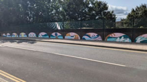 The pictures on the bridge by the station had progressed and I talked again to the artists.