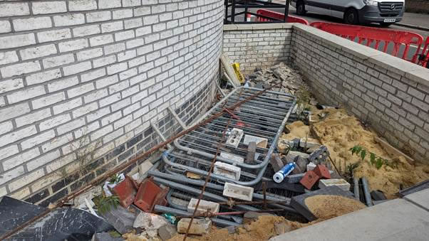 A fellow can take a limited amount of pleasure so I continued my firkling along the A4 and came (again) on the sorry sight on the corner of the A4 and Windmill Road. I have raised this horror with planning but nothing has changed, apart from Hounslow Highways putting their artistic orange barriers up. I suppose this will stop people falling into the holes left by the developer on the pavement.