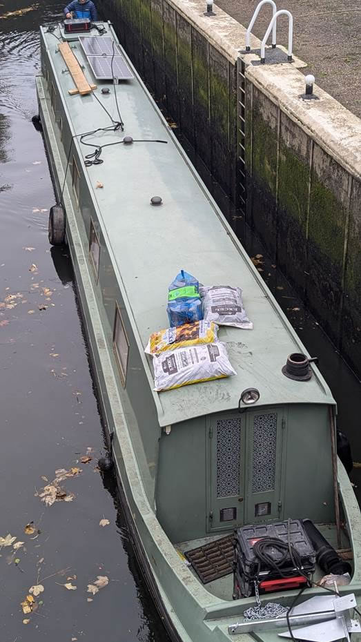 Meanwhile I daringly crossed the Dock Road bridge over the river to Brentford Dock. I lost my courage at the last moment and returned across the lock bridge without entering the prohibited area, rewarded by the rare sight of a moving narrow boat heading for Brentford port with a massive cargo of charcoal briquettes. That’s what we get with freedom from the bureaucracy of Brussels, or Bruxelles what us cultured types who speke Frog call it.