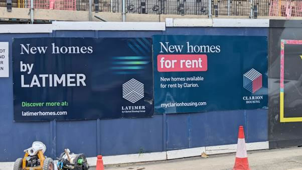 The development is progressing fast and some of it begins to look like flats – the townhouses are rising too but still some way to go. I’d heard of Clarion, though I didn’t know they were the largest Housing Association in England and I had never heard of Latimer, but turns out they are the shared ownership arm of Clarion. Hoping amongst all these new flats and houses there will at least be a few that are affordable for renters and buyers. I hope the doors fit better than the hoardings