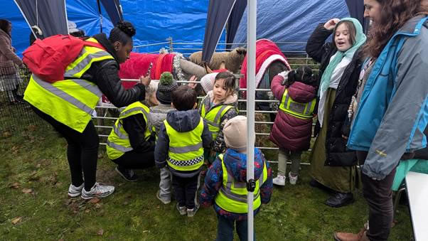 In addition to donkeys Syd and Taffy and two anonymous sheep, rabbit, guinea pig etc I was lucky to be there at the same time as the tiddlers from the nursery which is right next to where I live.