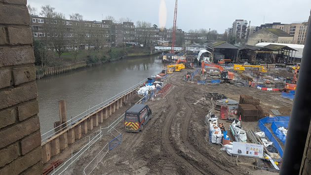 The cranes have gone and the river wall looks to me like it is now complete. There are two other metal stanchions out in the river and somebody told me that Fairview have been pulling hard and can't get these two teeth out! Fairview have updated their website with this news though they don't mention the stuck teeth. Anyway it's good the hammering is (I hope) now history and one day I'll get my riverside path back.