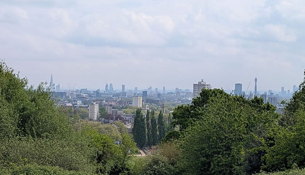 On the way back I got off at Gospel Oak, which was just one of those seemingly daft names for London stations. Turns out there was an oak tree there where apparently Wesley used to give gospel readings. No oak left (though of course there is a pub) and it turns out to be next to Parliament Hill Fields. I decided to go up the hill to the viewpoint at the top - quite a climb for a fat old man like me - but well worth it, and an interesting walk down into Hampstead for the next station at the Heath.
