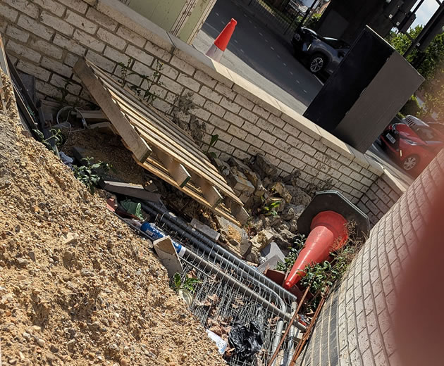 I had quite a free Friday after that so I inspected the infamous junction between the Great West Road and Windmill Road which I have been largely futilely banging on for about a year. A couple of weeks ago they did finally fix the worst part of the pavement, though the horrible mess within their 'garden area' remains.
