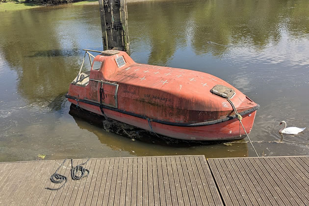 As you may have not have noticed, a lifeboat has arrived at Watermans Park. Haven't heard of a liner founding by Richmond Lock but they never tell me anything. Meanwhile you can see from this our wonderful - if currently entering its about fifth year of disuse - new pontoons are, umm, not progressing. Should I be pleased that a new wreck has joined the 3 or 4 that were not cleared 6 or 7 years ago. Perhaps we will again be starting a mass squat there like the old one in the same place and the one I have been calling for action on at Clitherow's Island for about 6 years. That island is owned by the council apart from a small bit by the lock which is owned by a woman who seems to live above a Leyland SDM shop in Fulham High Road.
