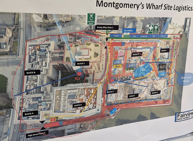 Took a few pics but this is the easiest to understand. River Brent is on the right and the canal/weir stream is at the bottom. I reckon Blocks A to D are more or less complete - some of C I think is already inhabited ready for Lidl across the road. They didn't start the ones near the river until they had finished deafening us with the river wall construction (though I think Muck, the tribute to the Hebrides, is probably progressing well) and actually all the rest is shooting up too. So glad that one of the developments in Brentford is actually happening, and happening fast.