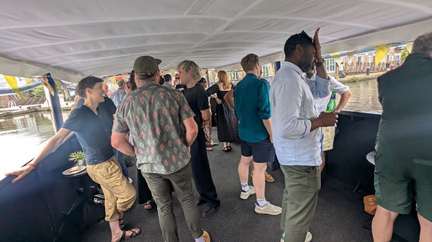 Saturday of course was the Canal Festival. I went up to Boston Manor Park and had a coffee at the lovely Potting Shed, then decided to go and do a morning recce of the Festival site. So I found my way to Robin Grove and over the new(ish) bridge and along Brentford Lock West. Everybody fussing about getting ready. My volunteering shift was 3pm to 6pm so I took in a bit of test match (what a great one!) and then turned up at the Digital Dock. My job was as a wandering minstrel (fortunately for everyone I suppressed the Minstreling) so I took a bunch of programmes.