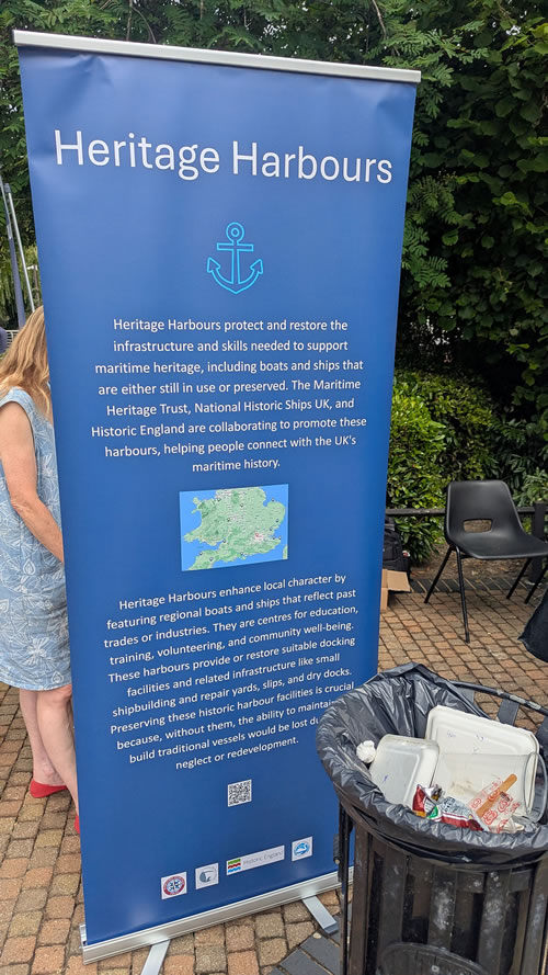 I spent a few minutes on the Heritage Harbour stand. We are in the process of registering as a charity and that will I hope increase the intensity. The stand was compromised by the wind blowing the signs over and when I got there our banner was behind a beautifully full bin.