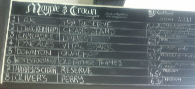 TamI first have to make clear that the Magpie and Crown is my favourite pub in Brentford (I do also have a local). I shall try and make it clear why it's my favourite but wish to declare my bias.