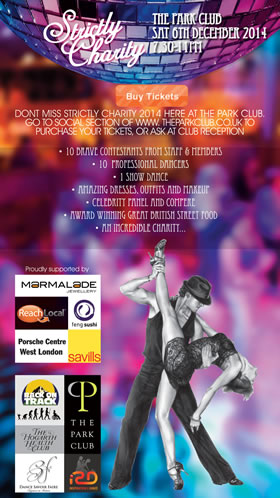 Finally, more thank yous to our supporters who now include the wonderful Marmalade Jewellery, Feng Sushi, Nubeginnings, Savills Chiswick, Porsche Centre West London, Reach Local and Mike ’ s Dive Store, Chiswick’s Sipsmith and Acton’s Hire IntelligenceIf you have any queries regarding Strictly Charity, please don't hesitate to contact Tim Slater at tim@theparkclub.co.uk.