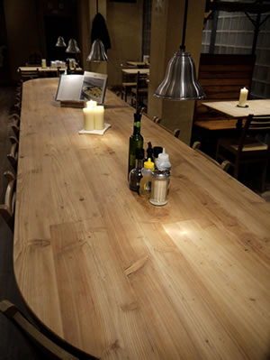 When we arrived, the communal table, inviting as it looked with glowing fat white candles and a recipe book “Communal Table Memories” on a stand, was empty and our fellow dinners were seated in pairs at the scrubbed pine tables by the windows. So the two of us followed suit. And the room felt surprisingly cosy despite its plate glass windows. The wood clad walls, while sleek and modern, had a slightly Alpine chalet feel that’s great for bad weather.