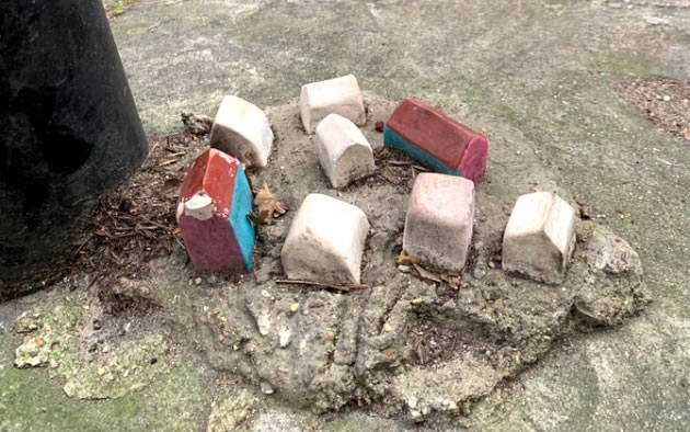 One person who contacted us about them observed, "A lot of care and attention has gone into this and it would have taken time and effort to create them. They must have been done over night. I hope they are allowed to remain because they are set to become a talking point. As for who is responsible, it would have to be a ceramicist who lives locally with anarchist tendencies but that still leaves us with a huge pool of suspects as its Chiswick we are talking about here. "