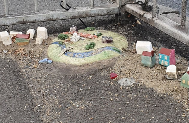 Some of miniature settlements set in concrete are at busy road junctions. There is one next to the A4 by the junction with Sutton Court Road and another on Chiswick High Road across from the Catholic Church. The one at Sutton Court Road is the most extensive with a number of houses around what appears to be a lovingly created reconstruction of Chiswick House and Gardens.
