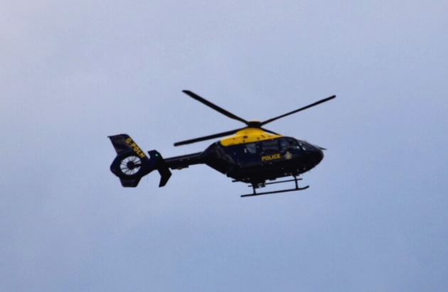 Police helicopter seen above the area. Picture: Liz Jenner