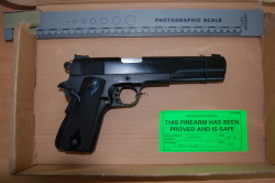 In the early hours of Saturday, 7 August an armed officer executed a warrant at Lambert's address where he was arrested. When officers searched the premises they found an air pistol hidden behind a speaker. The following day he was charged with the offences and remanded into custody.